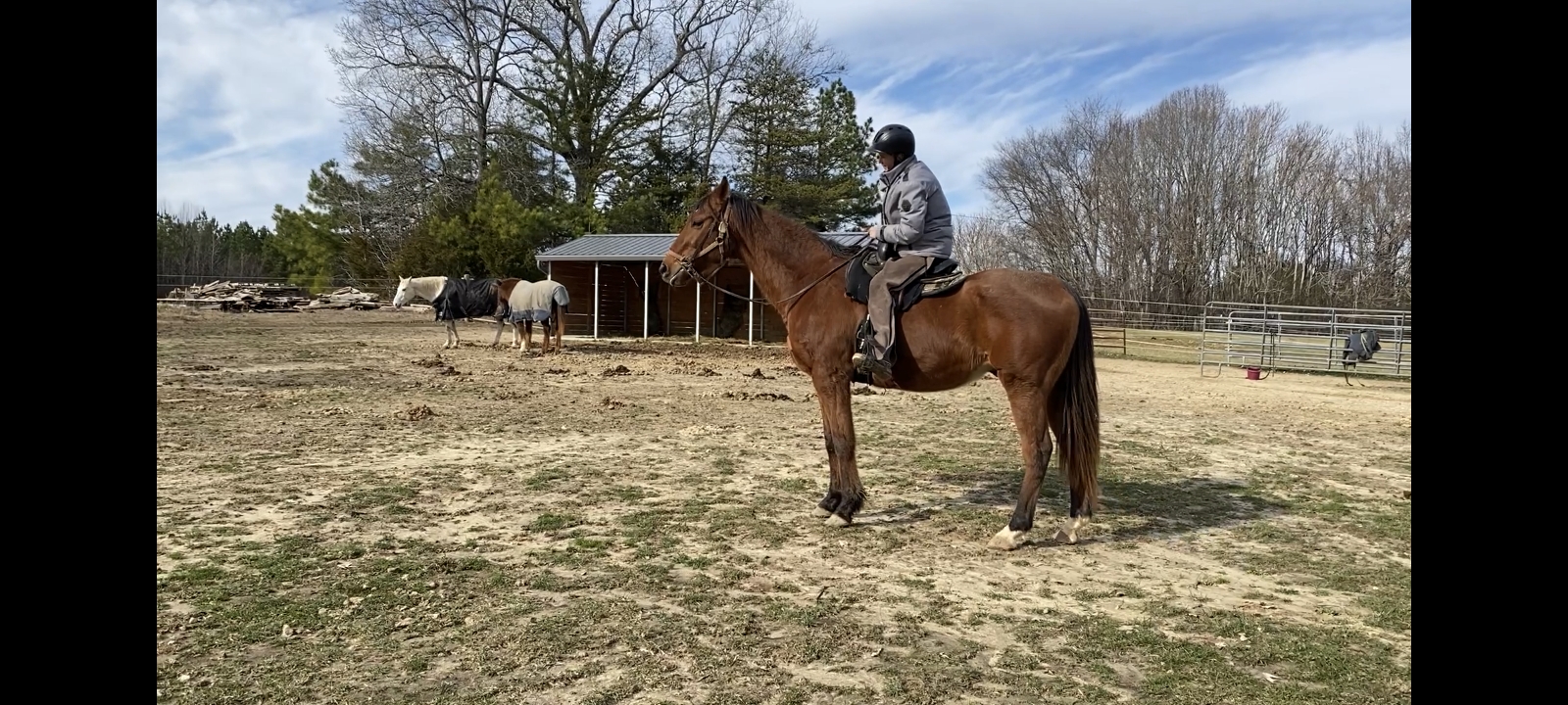FEB 2024// Griffy is doing well riding in his field. This is part of his training!